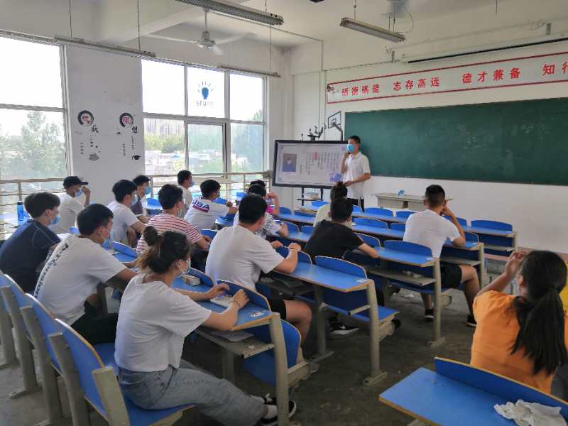 体育学院复学学生22名均符合有关规定,安全复学。其辅导员李科长为学生上了疫情复学后第一个班会。